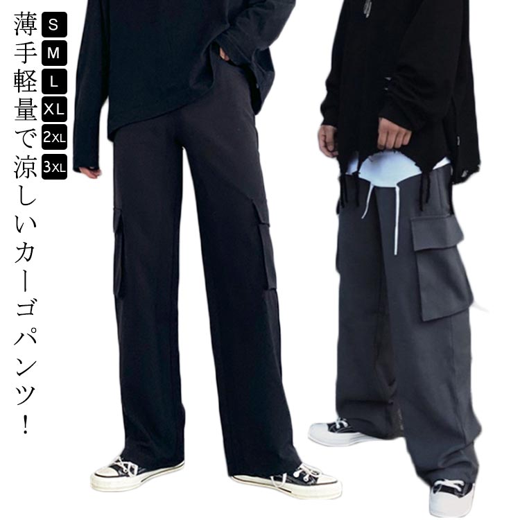 ゆったり ロング丈 イージーパンツ ポケット付き レディース カーゴパンツ 薄手 春夏 メンズ 無地 ワイドパンツ 秋 ビッグシルエット 体型カバー 涼しいパンツ カジュアルパンツ 長ズボン チノパン