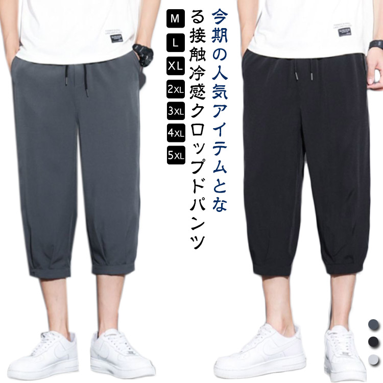 アイスシルクパンツ 7分丈 接触冷感 接触冷感 涼しい M~5XLメンズファッション ズボン パンツ