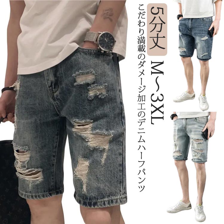 ダメージ加工 ~3 5分丈 紳士 デニムパンツ デニムパンツメンズファッション ズボン パンツ
