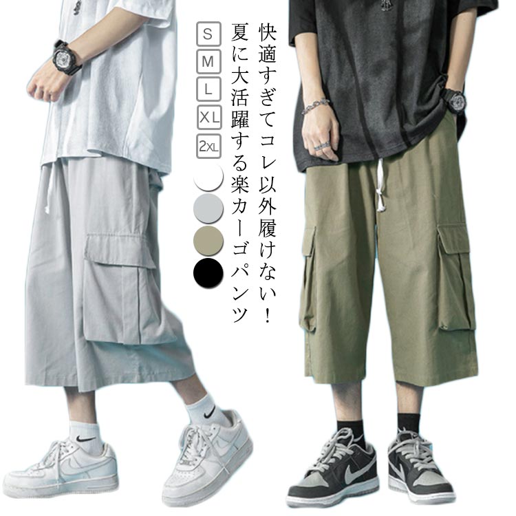 体型カバー カーゴパンツ S~2XL ビッグシルエット 7分丈メンズファッション ズボン パンツ