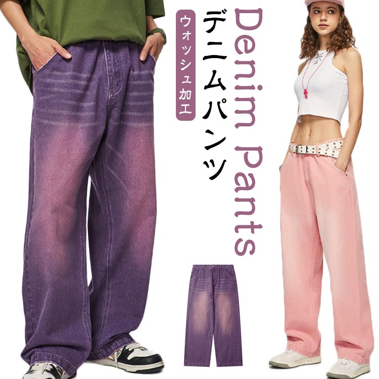ワイドパンツ ストレートパンツ デニムパンツ パンツ ウォッシュ加工 ダメージ加工 ワイド ストレート デニム デニムパンツ ジーンズ ウォッシュ加工 イージーパンツ デニム ストレート ジーンズ ゆ