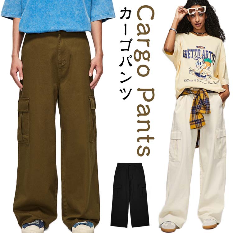 ストリート系 ワイドパンツ カーゴパンツ ゆったり ストレートパンツメンズファッション ズボン パンツ