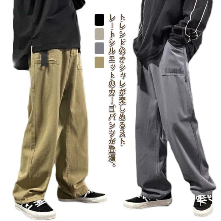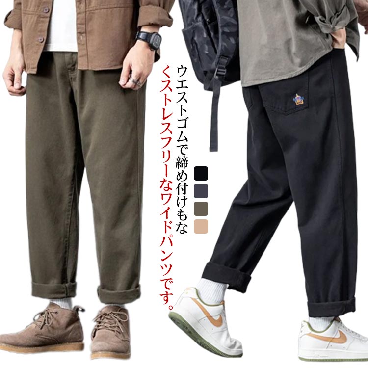9分丈 カーゴパンツ アメカジ メンズ ストレートパンツ アンクルパンツ チノパンツ 秋 ワイド チノパン ズボン メンズファッション ゆったり ウエストゴム ロングパンツ 春 ストレートパンツ テー