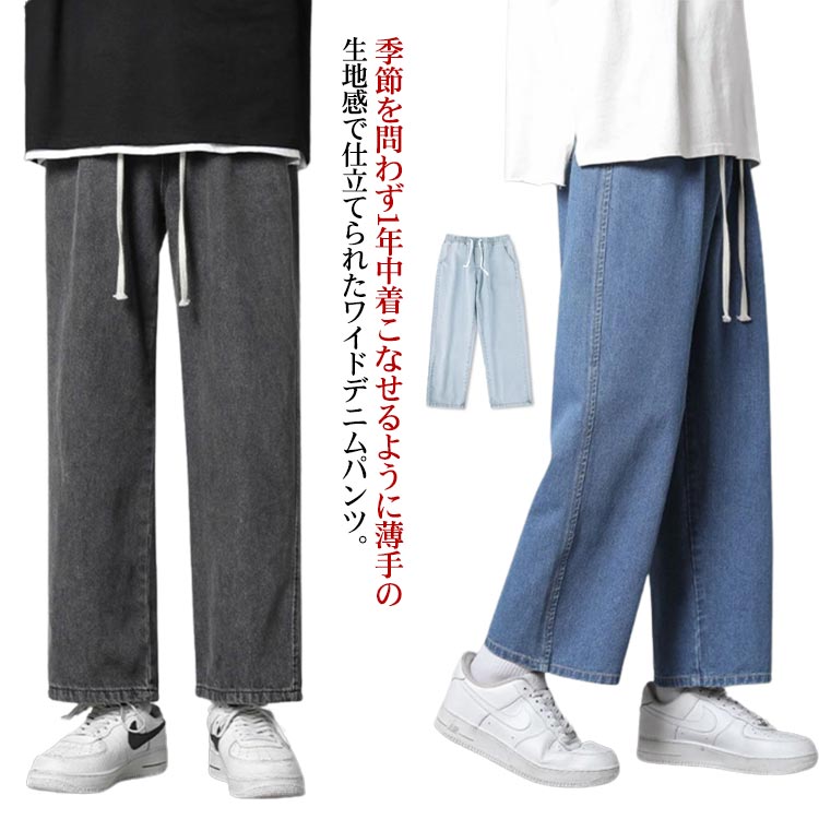 ゆったり デニムパンツ メンズ 夏 ワイドパンツ ボトムス ジーパン 春 男女兼用 ジーンズ ズボン ルーズシルエット カジュアル ウエストゴム ユニセックス ストレート 9分丈 ストリート トレンド