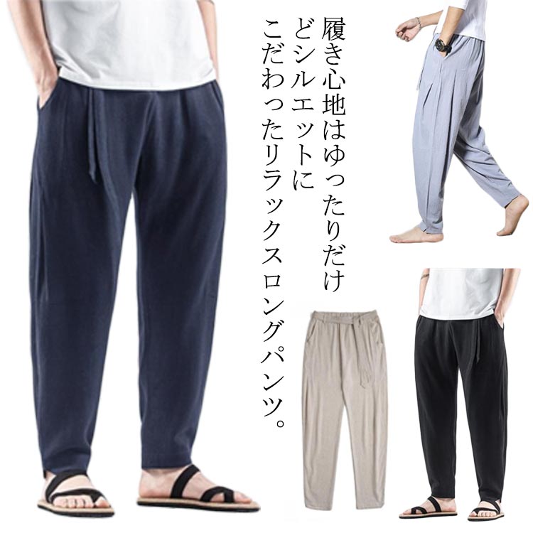 サルエルパンツ リネンパンツ メンズ ロング丈 ズボン 春夏 涼しい イージーパンツ ゆったり ウエストゴム コットンリネン 綿麻パンツ リラックス 部屋着 ルームウェア 大きいサイズ