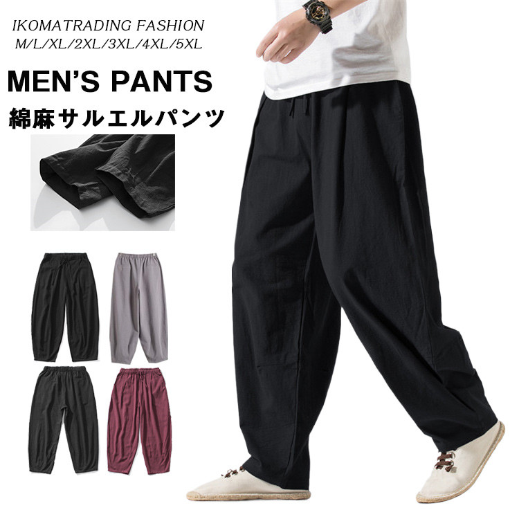 リネンパンツ メンズ カジュアルパンツ 綿麻 ロングパンツ ワイドパンツメンズファッション ズボン パンツ