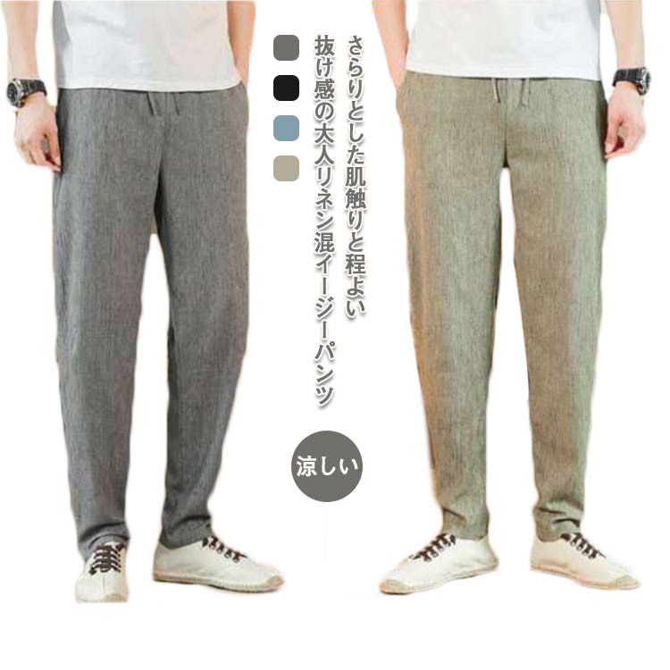 綿麻混 テーパードパンツ 薄手 リラックスパンツ ロングパンツメンズファッション ズボン パンツ