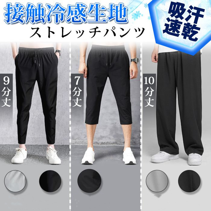 サマーパンツ パンツ メンズ スポーツパンツ アイスシルク ロングパンツ 接触冷感 冷感パンツ 熱中症対策 速乾 夏 ズボン 9分丈 7分丈