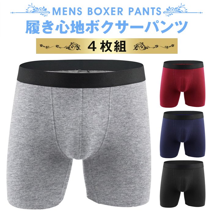 ボクサーパンツ メンズ ロング 4枚セット下着 インナー アンダーウェア 肌着 ギフト プレゼント 贈り物 快適 吸汗 速乾 無地 夏 蒸れない