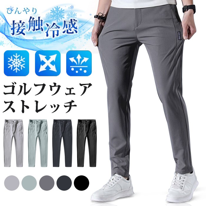 ゴルフパンツ メンズ 接触冷感 ロングパンツ 吸汗速乾 ストレッチ カジュアルパンツ 涼しい 速乾メンズファッション ズボン パンツ