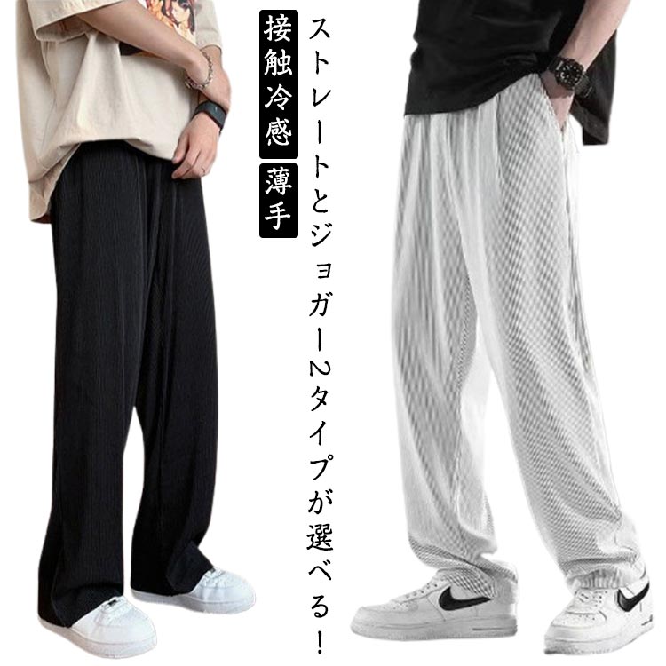 メンズ ワイドパンツ 冷感パンツ ロングパンツ 男性用 カジュアル 長ズボン ストリートパンツ ジョガーパンツ