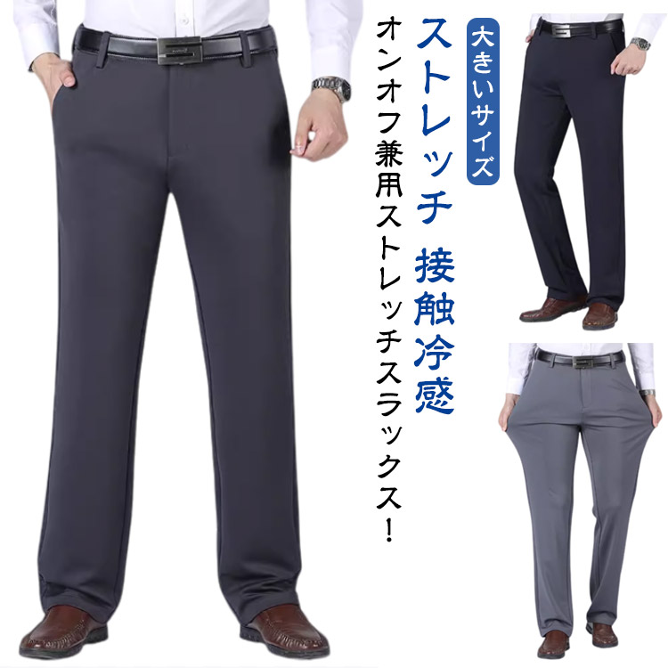ストレッチ 接触冷感 スラックス メンズ スリム ウォッシャブル 裾上げ済み 春 夏 秋 細身 美脚 黒 ネイビー グレー 無地