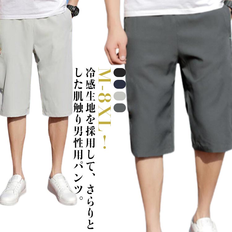 接触冷感 ハーフパンツ ひざ下 7分丈 メンズ クロップドパンツ チノパン イージーパンツ 冷感 涼感 ワイドパンツ 涼しい カジュアルパンツ