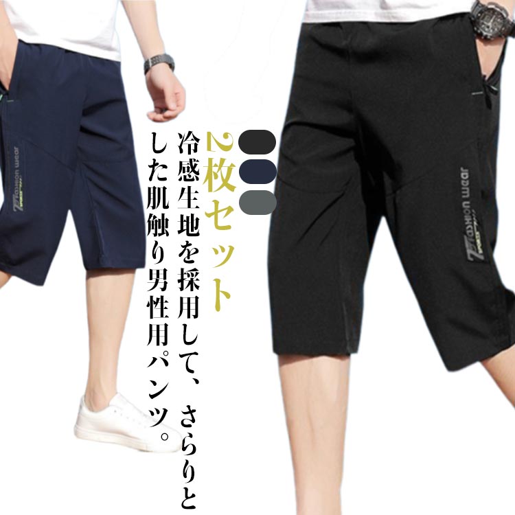 接触冷感 ハーフパンツ ひざ下 7分丈 メンズ クロップドパンツ チノパン イージーパンツ 冷感 涼感 ワイドパンツ 涼しい カジュアルパンツ 父の日