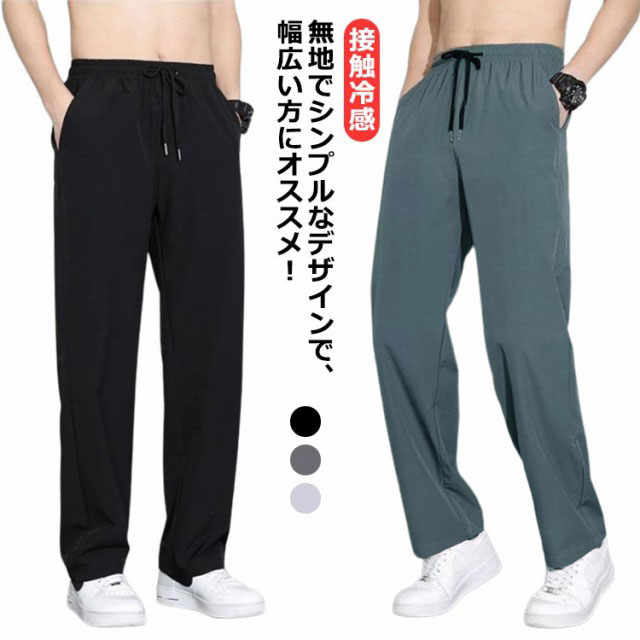 ロングパンツ 接触冷感 イージーパンツ メンズ 前開き ストレッチ 夏 無地 ストレート 吸汗 速乾 通気性 軽量 快適 薄手 パンツ スポーツウエア ルームウェア