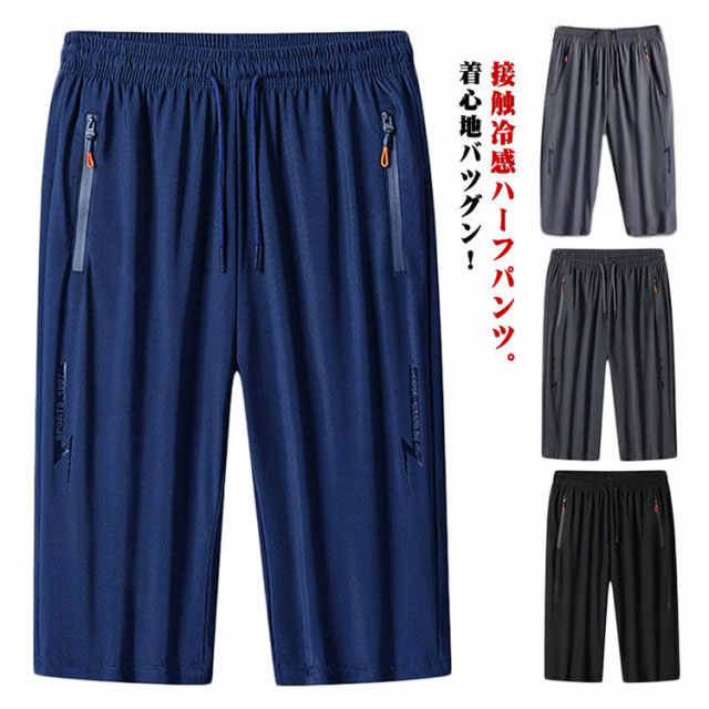 ハーフパンツ スウェットパンツ 接触冷感 吸汗速乾 無地 ファスナーポケット 通気 ストレッチ ワークパンツ 9 超大きいサイズ 作業着 ゆったり