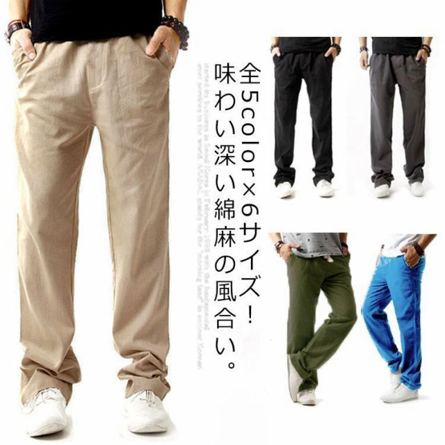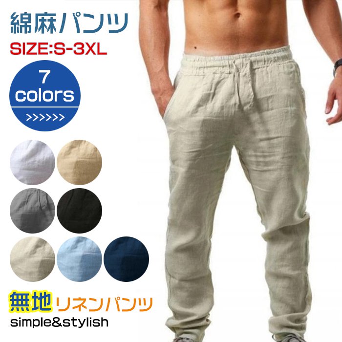 綿麻 ロングパンツ メンズ カジュアルパンツ リネンパンツ ウエストゴム 薄手メンズファッション ズボン パンツ