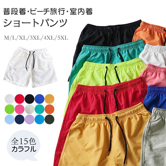 ショートパンツ メンズ 膝上 短め 無地 ショーツ ショート丈 短ズボン パンツ ウェストゴム ファッション 短パン お洒落 カジュアル サーフ 大きいサイズ 全15色 海辺 旅行 リゾート
