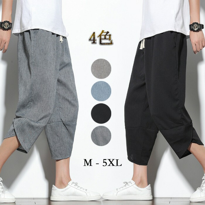 サルエルパンツ メンズ ガウチョパンツ ワイドパンツ リネン 無地 ハーフパンツ 袴パンツ ク ショートパンツ 春 秋 夏 父の日 ギフト プレゼント