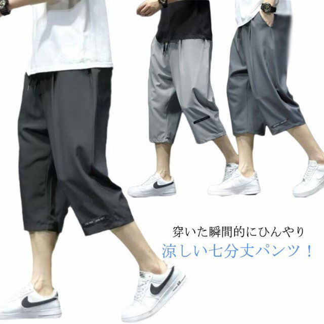 7分丈 パンツ メンズ クロップドパンツ 接触冷感 チノパン イージーパンツ 冷感 涼感 ワイドパンツ ロングパンツ 涼しい カジュアルパンツ ゆるパンツ ウエストゴム