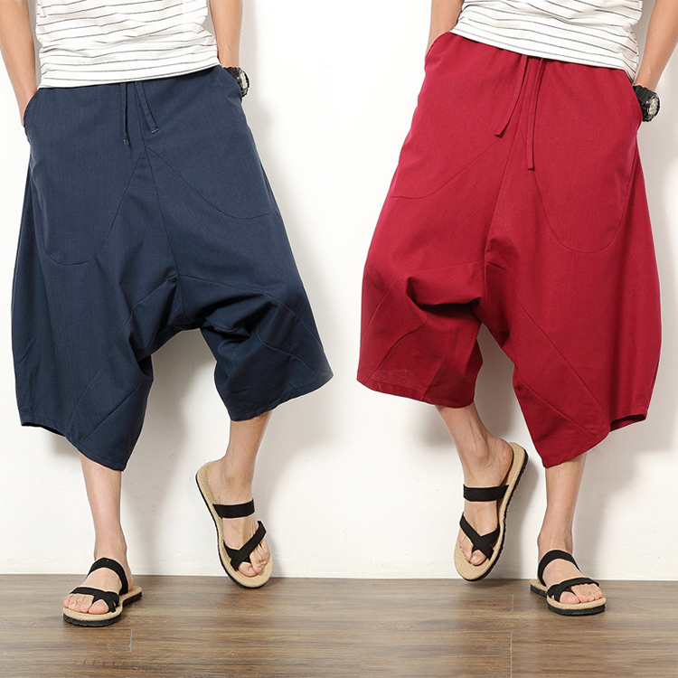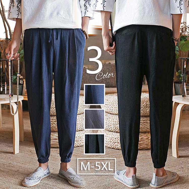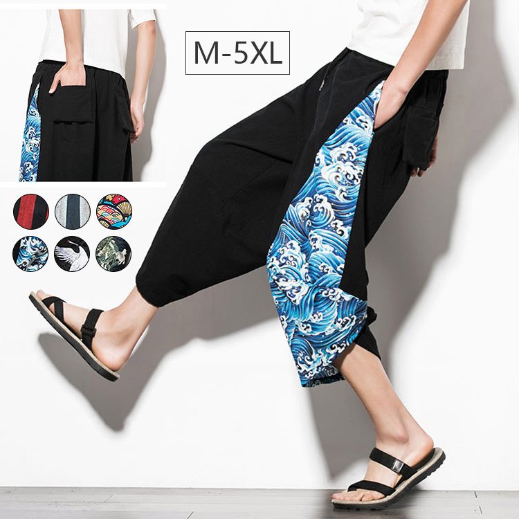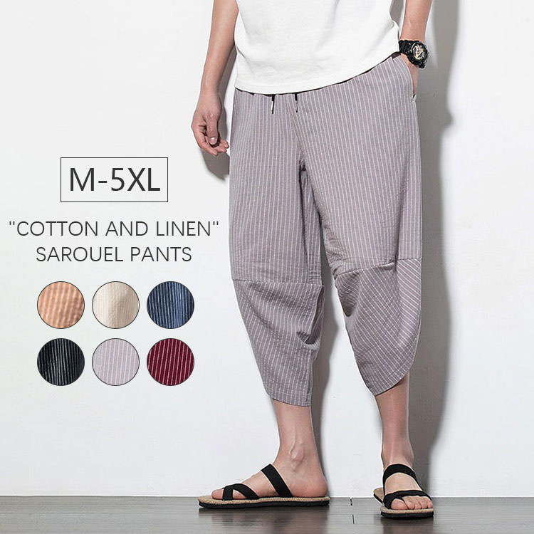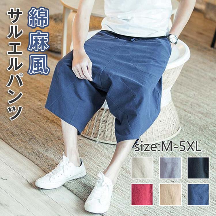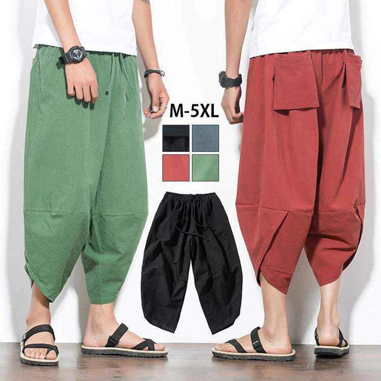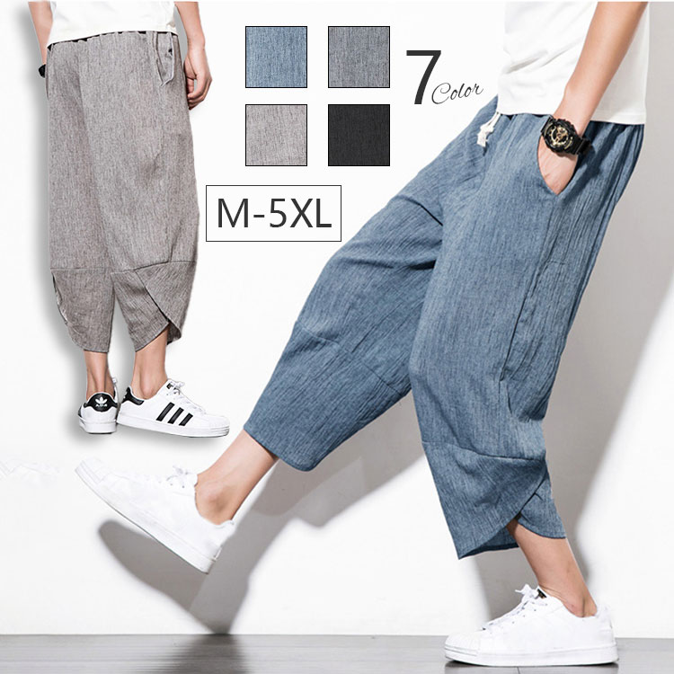 サルエルパンツ メンズ ワイドパンツ 7分丈 春夏 ガウチョパンツ 綿麻 サルエルパンツ 快適 無地 カジュアル メンズ ズボン ゆったり 大きいサイズ サルエル リネン パンツ