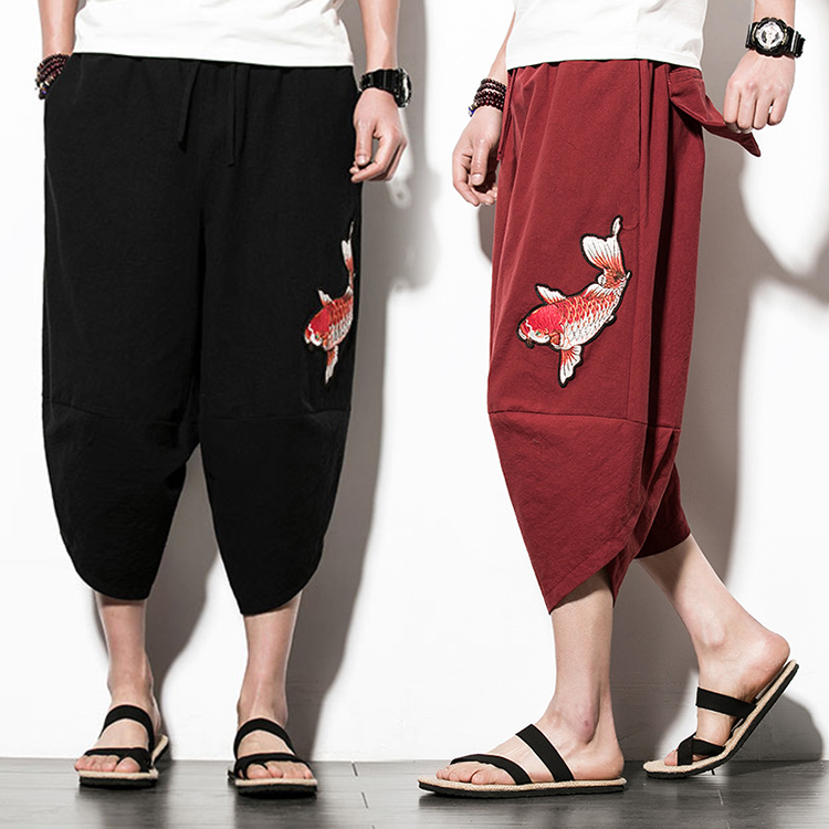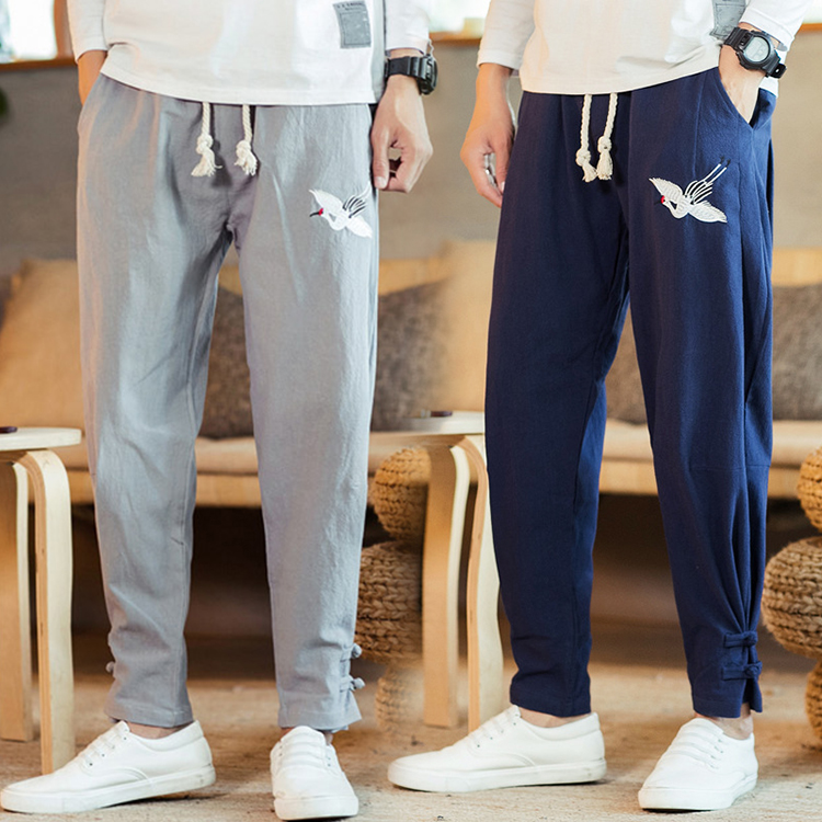 パンツ メンズ ロング 大きいサイズ カジュアルパンツ 中華風 ロングパンツ 刺繍 長ズボン メンズ ボトムス リネンパンツ