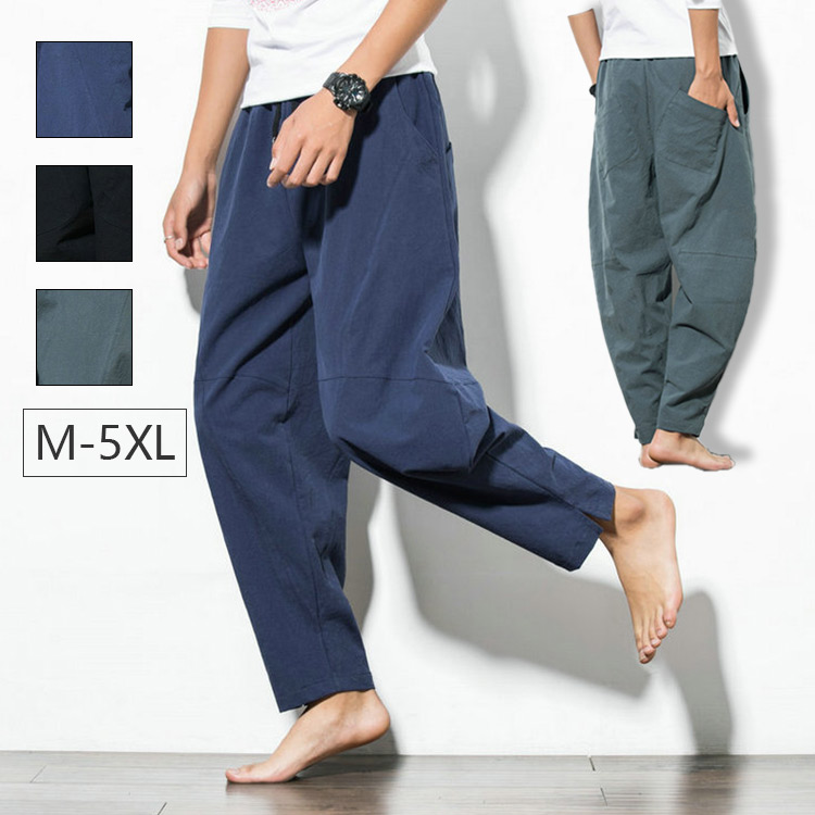 パンツ メンズ ロング 大きいサイズ 刺繍 長ズボン メンズ ボトムス メンズ パンツ 黒 リネンパンツ プレゼント カジュアルパンツ ロングパンツ