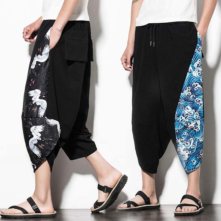 メンズ サルエルパンツ ワイドパンツ 7分丈 クロップドパンツ イージーパンツ ボトムス カジュアル ゆったり ガウチョ ハーレムパンツ