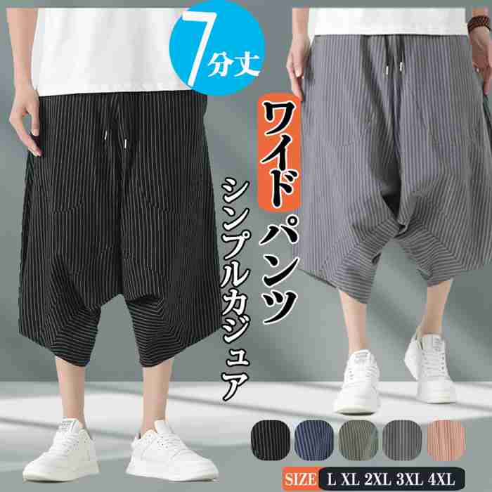 ワイドパンツ メンズ サルエルパンツ ガウチョパンツ 七分丈 ハーフパンツ 膝下 ボトムス ウエストゴム シンプル カジュアル 夏服 おしゃれ 新作 薄手 動きやすい メンズファッション