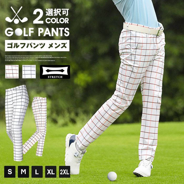ゴルフウェア メンズ パンツ おしゃれ チェック柄 ストレッチ ゴルフパンツ 大きいサイズ M~XXL