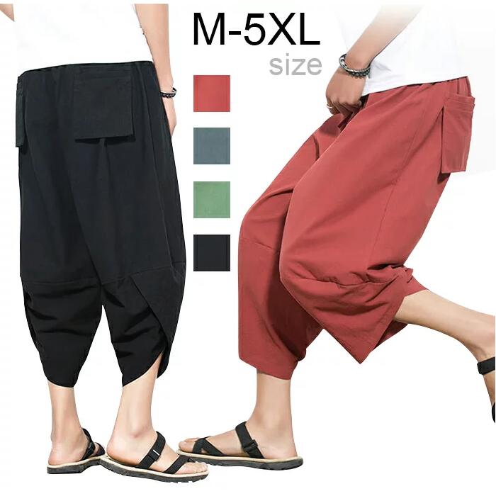 ワイドパンツ メンズ サルエルパンツ 無地 綿麻風 カジュアルメンズファッション ズボン パンツ