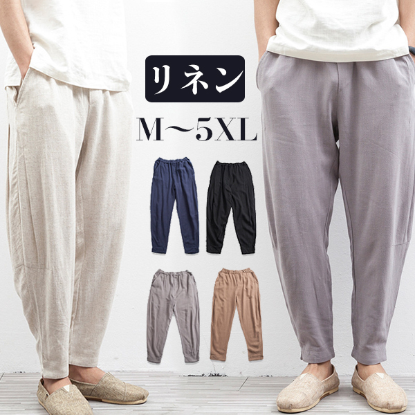 サルエルパンツ メンズ アンクルパンツ イージーパンツ ゆったり メンズ リラックスパンツ リネンパンツ クロップドパンツ 大きいサイズ