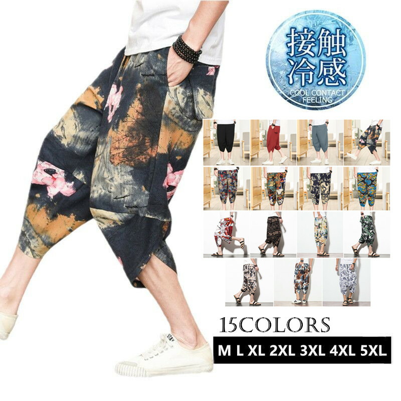サルエルパンツ 速乾 クロップドパンツ 7分丈 綿麻パンツ メンズ サルエルパンツ ワイド リネン 薄手 快適 カジュアル ゆったり 涼しい 薄手