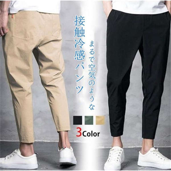 アイスシルクパンツ メンズ 接触冷感 チノパン 細身 ロング ゴルフパンツ 春夏メンズファッション ズボン パンツ