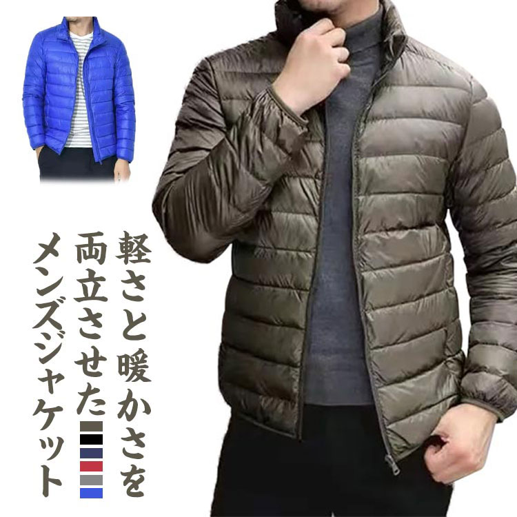 ダウンジャケット メンズ ブルゾン コート アウター ライトダウン 立ち襟 ショート丈 スタンドカラー 軽量 防寒 防風 保温 撥水 収納 コンパクト 暖かい 軽い 寒さ対策 あったか カジュアル