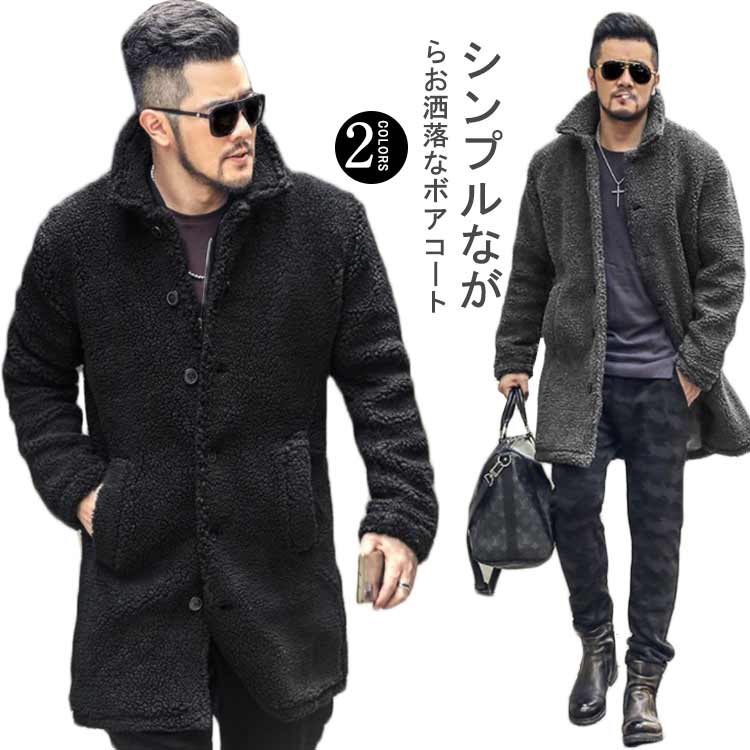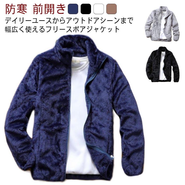 ~4 ボアジャケット もこもこ 暖かい スタンドカラー 前開きメンズファッション コート ジャケット