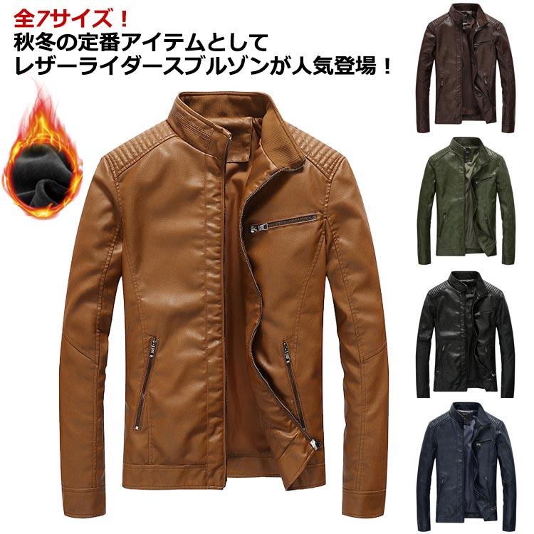 ~5 立ち襟 レザージャケット 選べる裏起毛 防風防寒 カッコイイメンズファッション コート ジャケット
