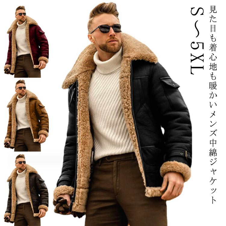 ~5 ムートン風 メンズアウター 厚手 ムートン風 暖かい 裏ボアメンズファッション コート ジャケット
