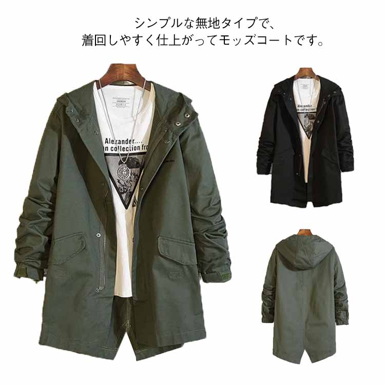 カーキ モッズコート M 大きいサイズ メンズ ロングコート フード付き ミリタリー スタイリッシュデザイン 着こなし 2XL L XL コート 3XL M L XL 2XL