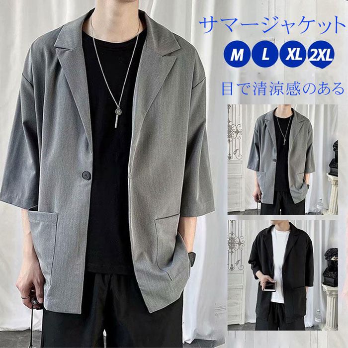 サマージャケット メンズ 五分袖 テーラードジャケット スーツ カジュアル 薄手 40代 50代 30代