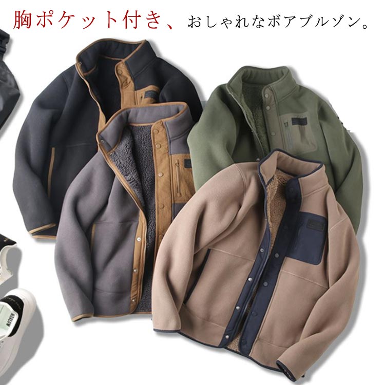 アウター ジャケット もこもこ ブルゾン 裏起毛 メンズ 胸ポケット おしゃれ 秋冬 ボアフリースメンズファッション コート ジャケット