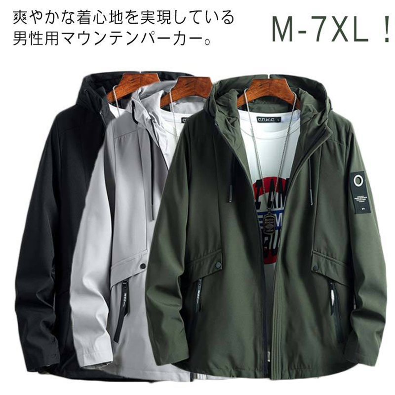 マウンテンパーカー メンズ 撥水 ウィンドブレーカー ジャケット 春秋 ブルゾン ジャンパー ジップパーカー フード付き コート ゆったり 大きいサイズ おしゃれ カジュアル ミリタリージャケット 春
