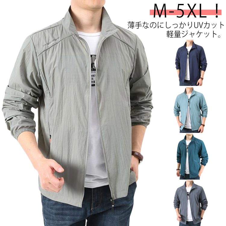 夏ジャケット メンズ UVカット ジャケット 薄手 スタジャン 無地 日焼け防止 アウター スポーツ 紫外線防止