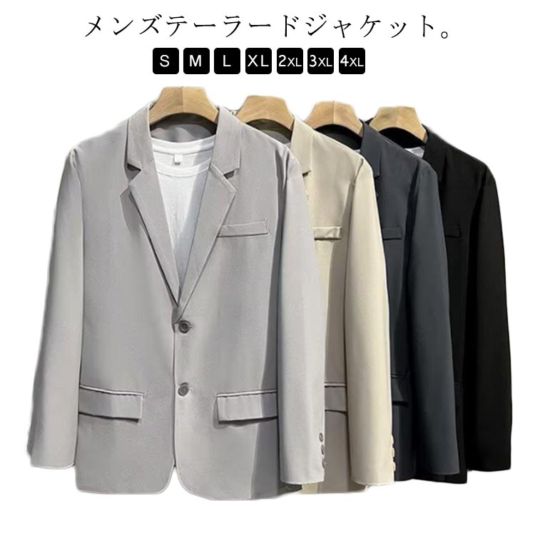長袖 ジャケット カジュアルスーツ 通勤 オフィス スプリングコート おしゃれ ボタン付き 秋 メンズ カジュアル 大きいサイズ ブラック ダークグレー ライトグレー 無地