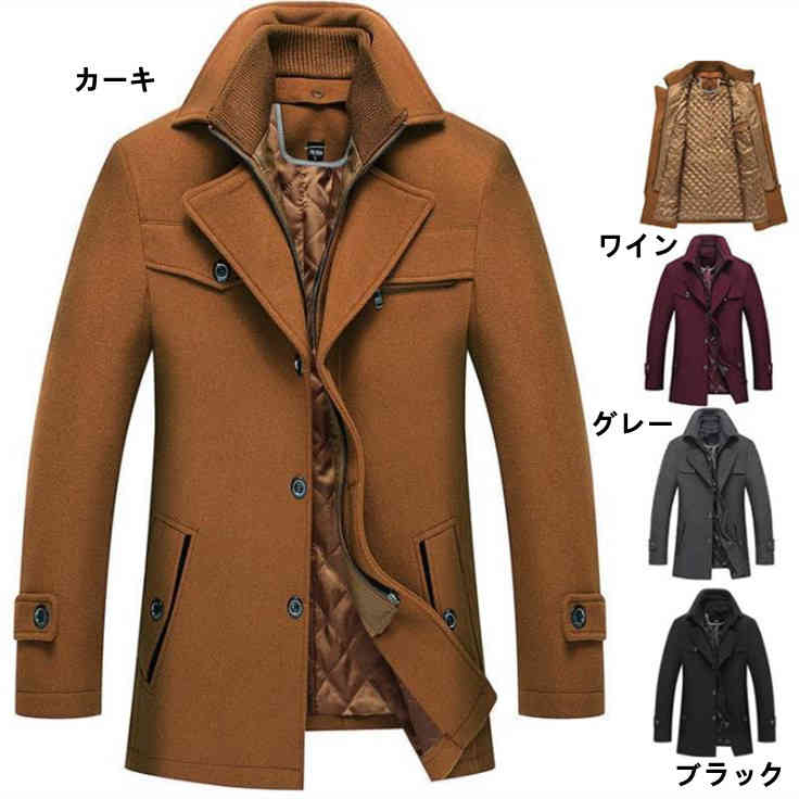 チェスターコート メンズ 細身 スタンドカラー テーラードジャケット 中綿 ツイード コート ウールコート ロングコート ロング丈 大きいサイズ 無地 ジャケット スリムコート メンズ