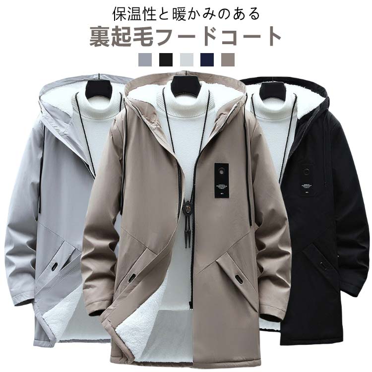 メンズコート 裏ボア 裏起毛 厚手 カジュアルコート 秋 冬 コート フードコート スタンドネック 防寒コート 韓国ファッション