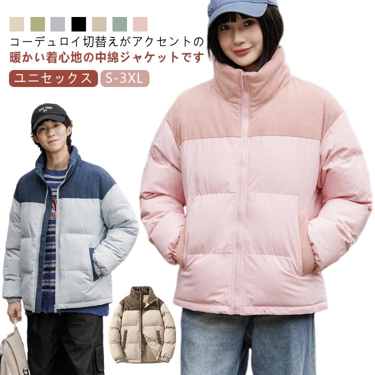 中綿ジャケット 秋 冬 ジャケット コート 厚手 防寒 ダウンジャケット バイカラー カジュアル ストリート 韓国ファッション