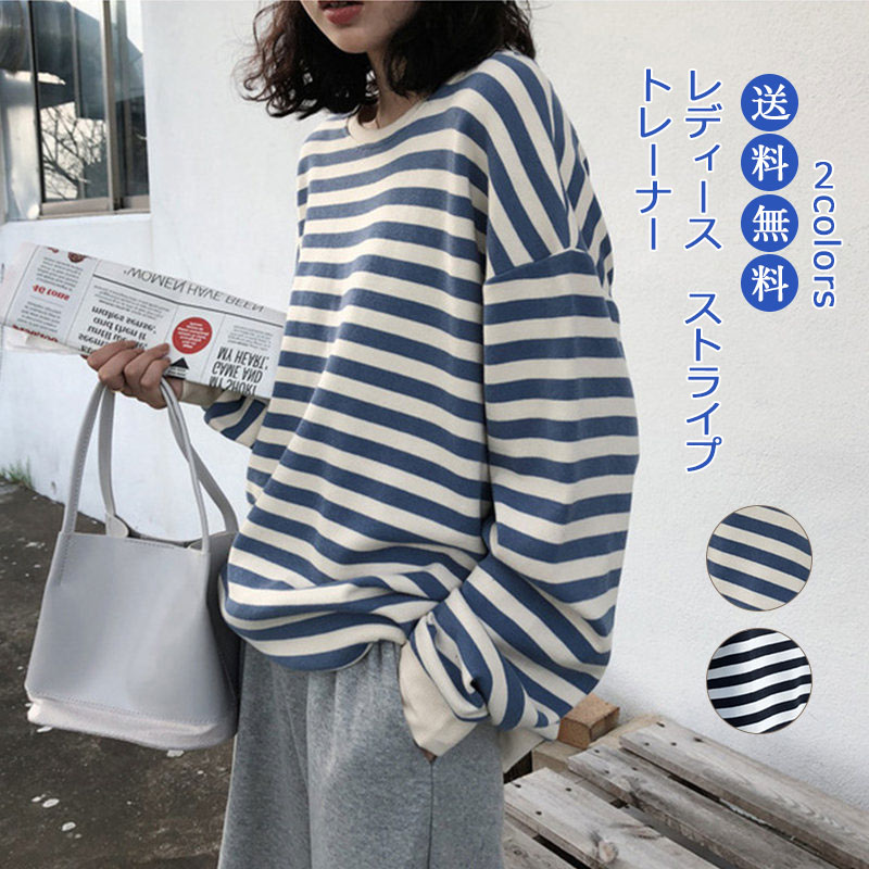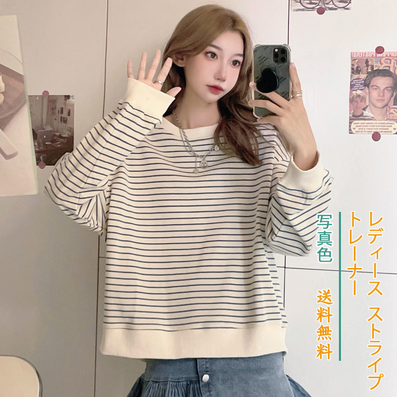シャツ 長袖 ショート丈 レディース トップス ストライプ トレーナー ゆったり パーカー カジュアル 着痩せ ファッション シンプル 大きめ ショート おしゃれ フリーサイズ 秋 韓国風 秋