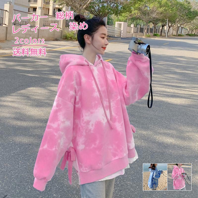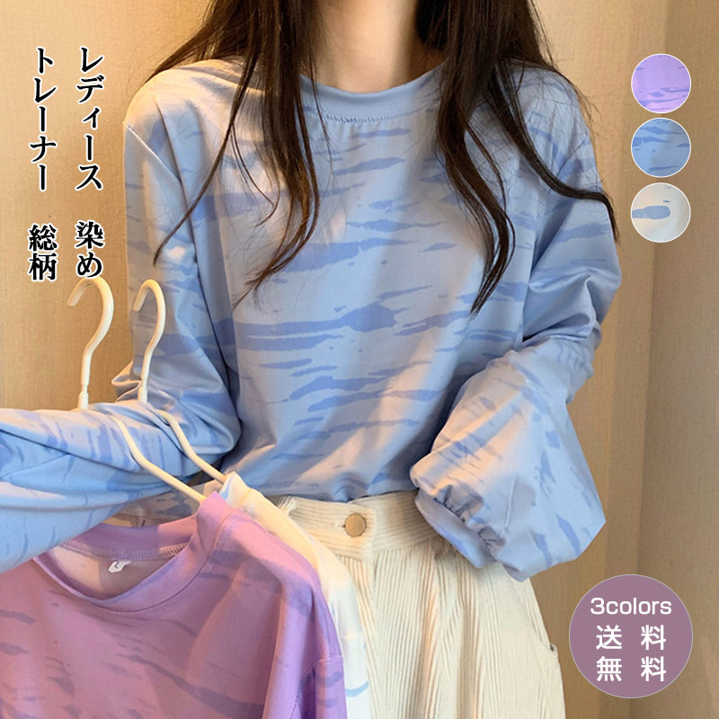 トレーナー レディース 染め ショート丈 スウェット プルオーバー ゆったり 総柄 着痩せ 長袖 パーカー トップス アウター 秋 おしゃれ きれいめ 大きいサイズ 部屋着 ルームウェア カジュアル
