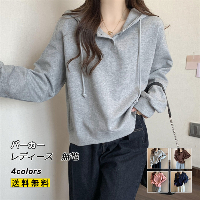 パーカー レディース 無地 スウェット プルオーバー トレーナー ゆったり トップス アウター 秋 長袖 おしゃれ きれいめ大きいサイズ ルームウェア カジュアル 韓国風